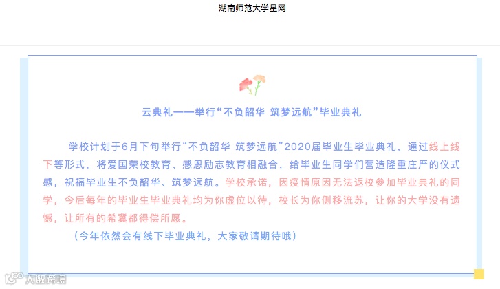 今年毕业季虽然我们不能相见,但这些特殊的典礼的珍贵记忆将永远留在心里,直到来日再见。