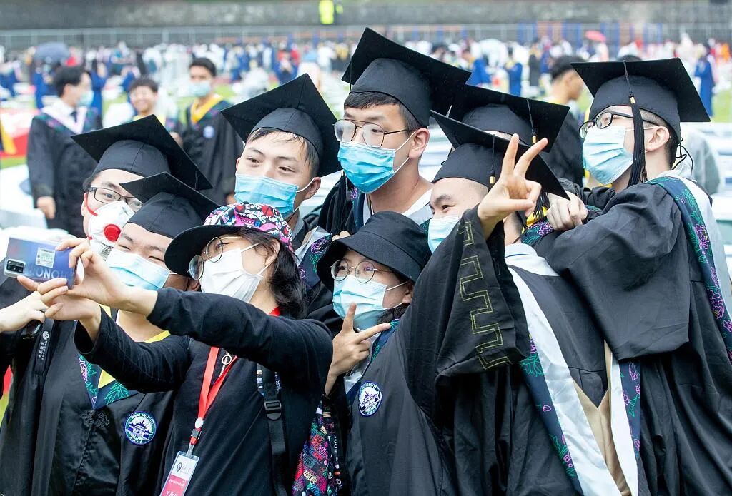 中国青年报对2505名应届毕业生进行的一项调查显示,88.6%的受访应届毕业生都是“云毕业”(celebrated their graduation in digital form)。