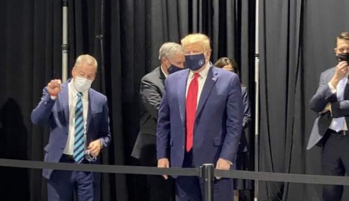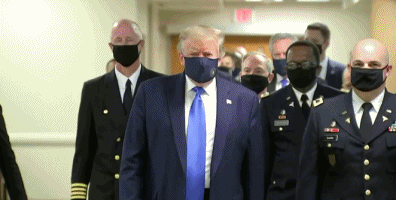 这张图片是特朗普第一次,也是唯一一次在公开佩戴口罩。数月以来,他一直拒绝在公开场合佩戴口罩。