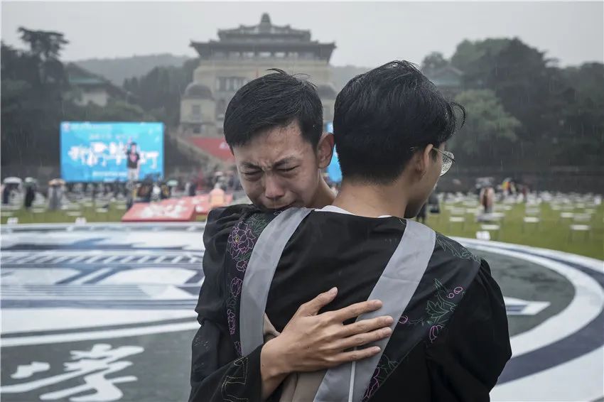 武汉大学毕业生,雨中相拥告别 Photo by Hu Dongdong/For chinadaily.com.cn