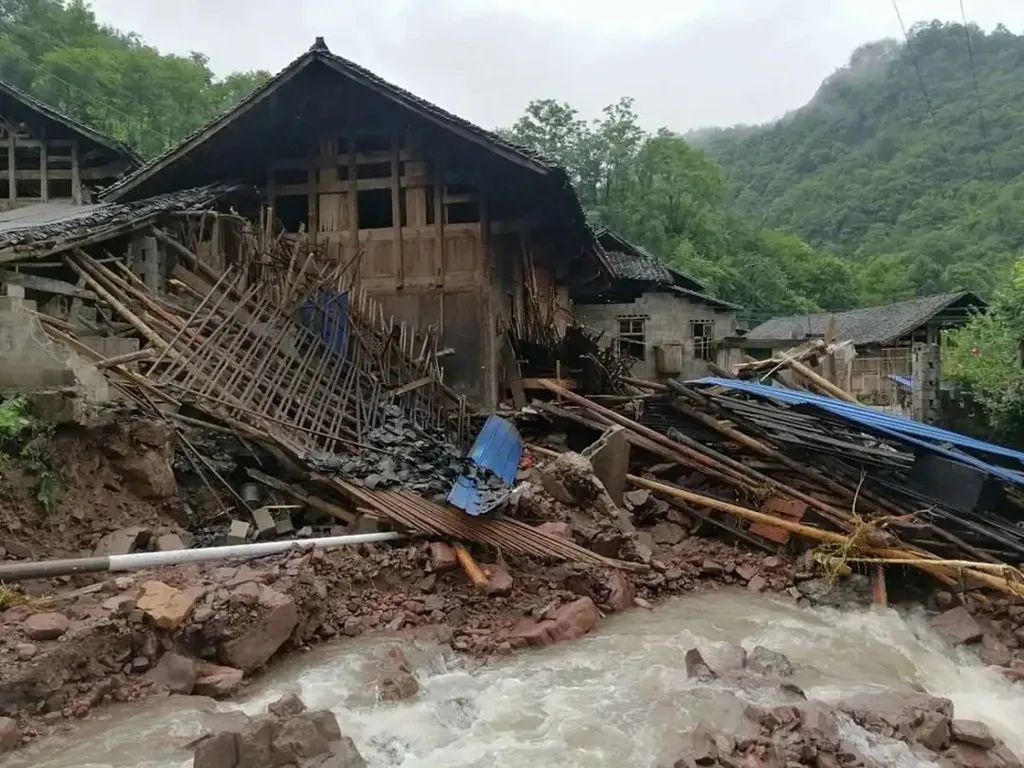6月10日,湖南省保靖县,强降雨导致房屋倒塌。图源:人民视觉