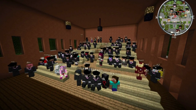 中国传媒大学动画与数字艺术学院在电脑游戏《我的世界》中举行毕业典礼,数十名同学组成的施工队每天上线十余个小时在游戏中施工建设,历时一个月,在游戏中搭建了1:1的学院场景。