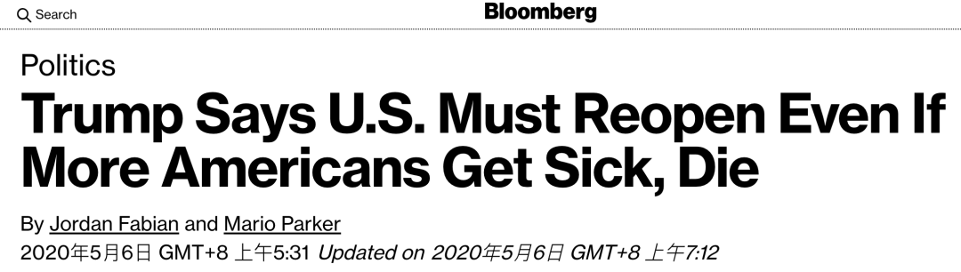 “可能会导致一些死亡,因为你不再被关在公寓、房子之类的地方。但与此同时,我们还是会保持社交距离,勤洗手,我们还会做很多我们在过去一段时间里学到的事情 。”