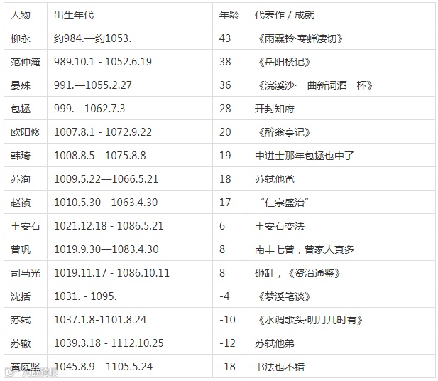 根据第三集韩琦1027年中榜眼为时间点,人物列举如下: