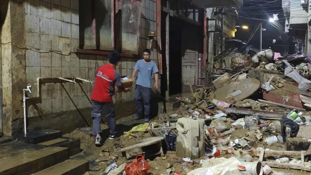 想起前几日洪水最猛烈时的场景,8年工龄的京东小哥曾庆刚表示:"这些年从没见过这么大的洪水,好在站点提前做了部署。" 但水刚退,他就带着兄弟们干了起来——帮小区住户搬运泡了水的家具,用高压水枪冲洗结着硬壳的泥泞路面,徒手清理堵塞下水道的杂物。"都是老客户了,他们现在最需要帮手。" 曾庆刚抹了把脸上的汗水,笑着说。
