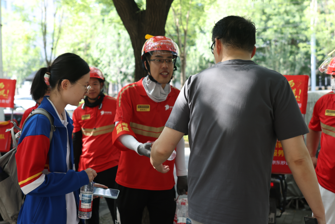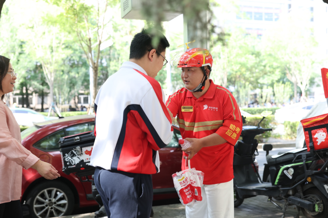 △京东外卖全职骑手为考生、家长送水(滑动查看)