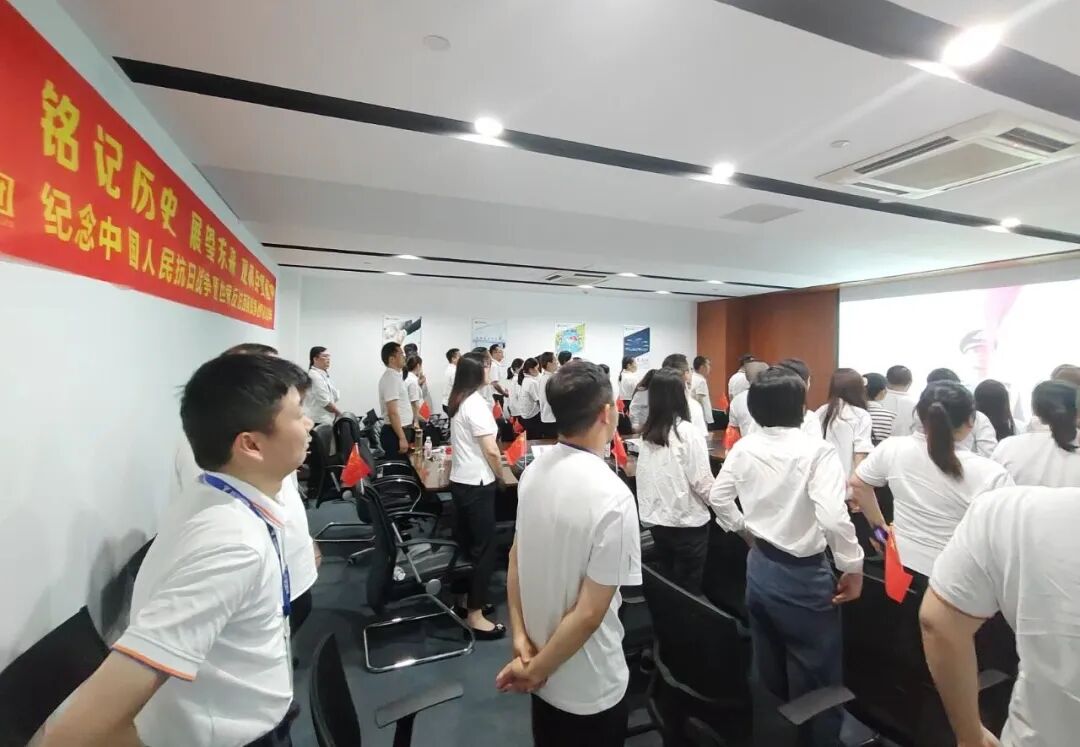 阅兵仪式开始前,总裁李俊为在场全员回顾了抗日战争的各个重要时间节点,诠释了为什么确定9月3日为抗战胜利日,要求全员认真观看本次阅兵仪式。