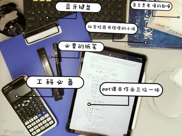 ❶ ipad+pencil:上课时间用来记笔记,课后用于阅读文献、电子书。