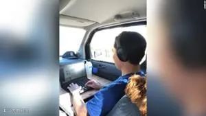 So, he set up a workspace in his SUV, and his dog Chewy joined too.