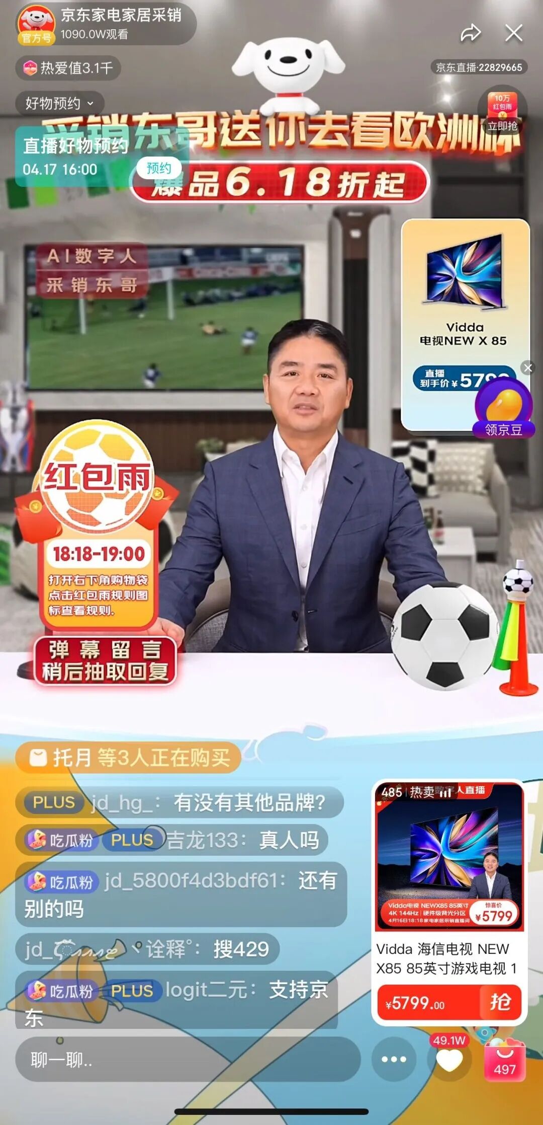 未来,“采销东哥AI数字人”将陆续加入京东各品类采销直播间,为消费者带来更多低价好物与福利。