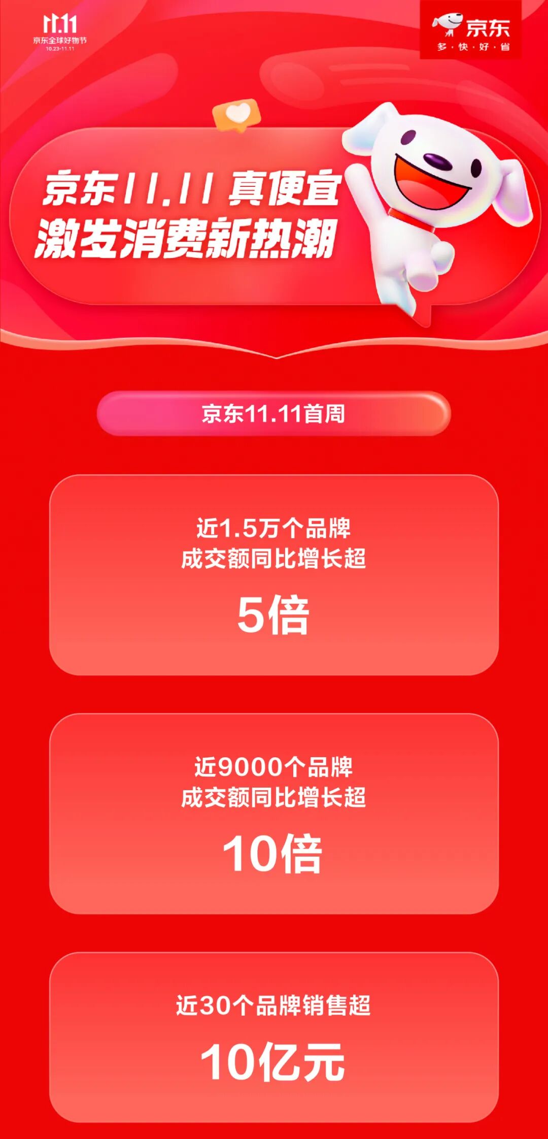 在今年京东11.11“真便宜”的核心命题下,京东不只为消费者带来了更丰富的低价商品、趋势新品,同时更为消费者提供了靠谱的商品品质和超预期服务。依托于京东长期打磨并持续领先行业的服务能力,今年京东11.11激发了更多消费者的潜在购物需求。