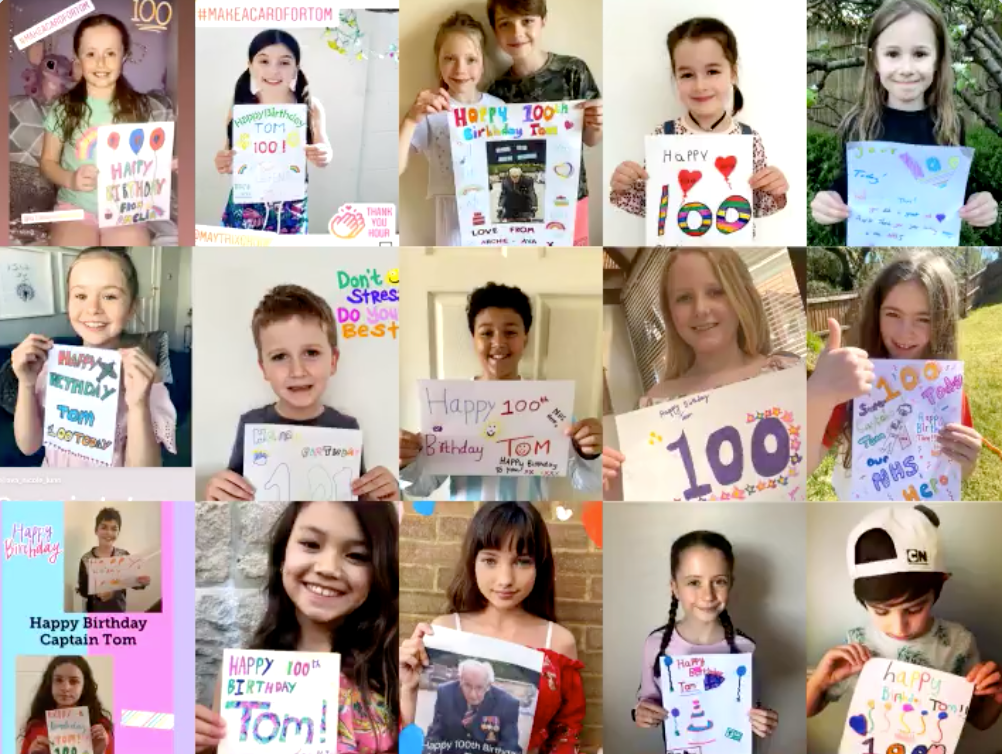 一名叫做里根·戴维斯(Reegan Davies)的8岁小女孩呼吁全英国的小朋友在汤姆上尉的100岁生日到来时,为他送上虚拟贺卡(virtual cards)。