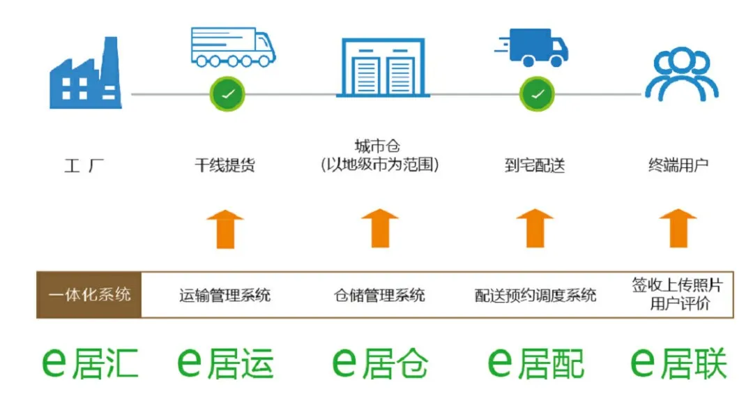 1、搭建家居送装一体网络,提供干仓配装一体化高品质服务,提升发货效率和消费者满意度。