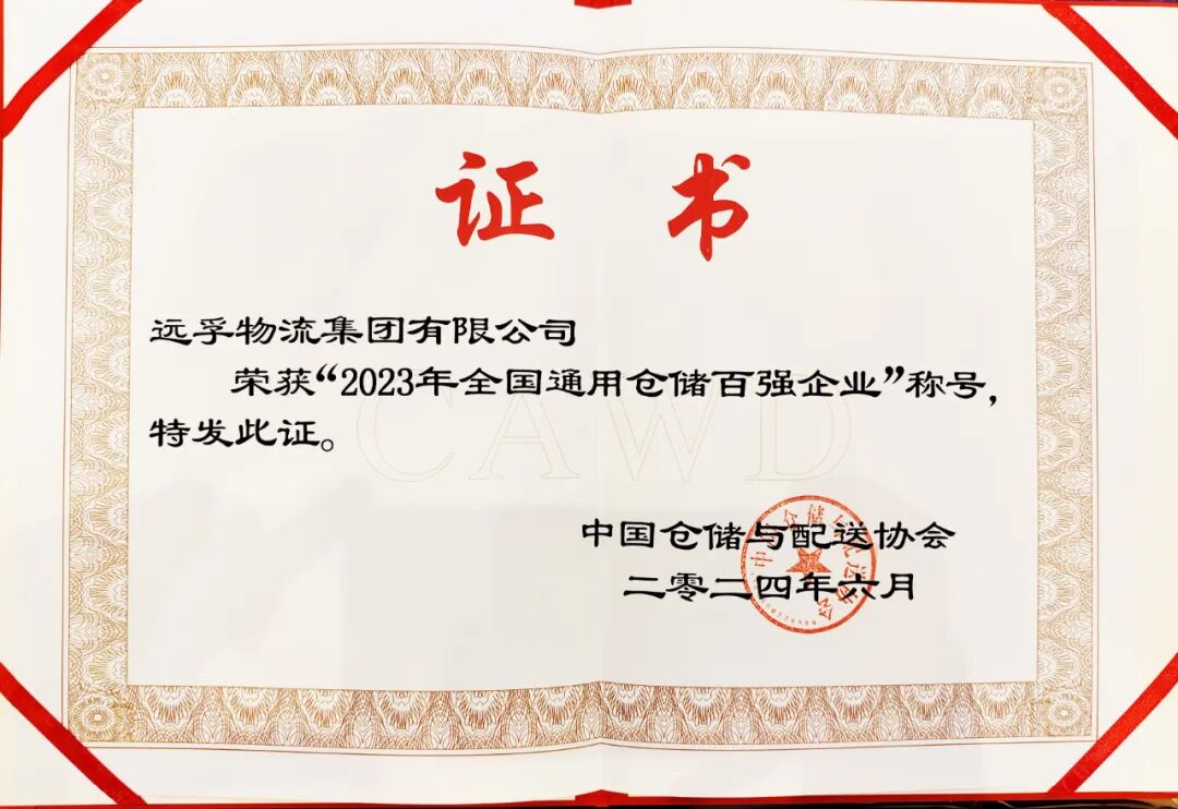 喜讯 | 远孚集团荣获“2023年全国通用仓储百强企业”称号