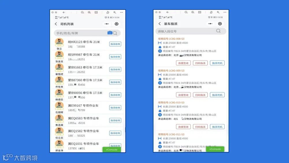 客户可在系统上查看司机列表,了解详细的司机信息及车辆信息,对司机指派装车;也可对某个物流承运商进行装车指派。