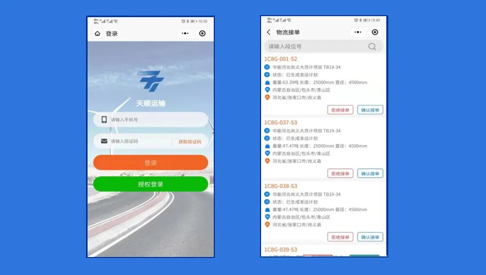 系统提供承运商管理功能,有效管理多个承运商;可直接在线通知承运商订单信息,承运商可通过移动端设备进行在线接单,提供车辆信息。