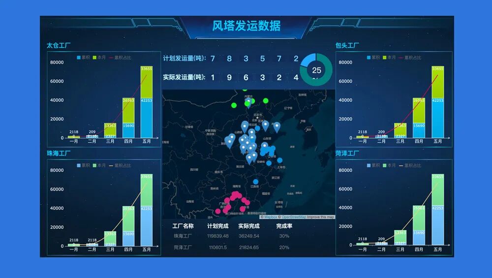 数据中心看板可自动生成各类分析图表,月度发运量、完成率等数据一目了然,呈现精确的项目进度反馈,为项目管理提供科学依据。