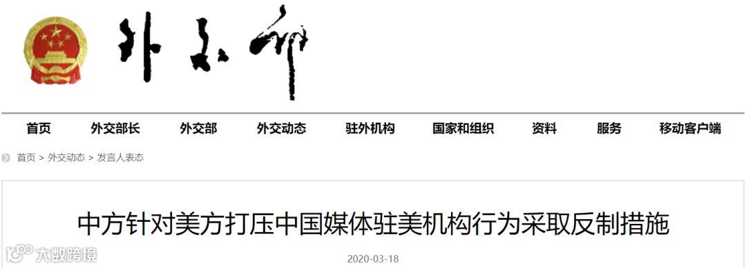 近年来,美国政府对中国媒体驻美机构和人员的正常新闻报道活动无端设限,无理刁难,不断升级对中国媒体的歧视和政治打压,特别是2018年12月美方要求有关中国媒体驻美机构注册为“外国代理人”,2020年2月将5家中国媒体驻美机构列为“外国使团”,随即又对上述5家媒体驻美机构采取人数限制措施,变相大量“驱逐”中方媒体记者。中方第一时间就美方错误做法向美方提出严正交涉,表达坚决反对和强烈谴责,并强调保留做出反应和采取措施的权利。