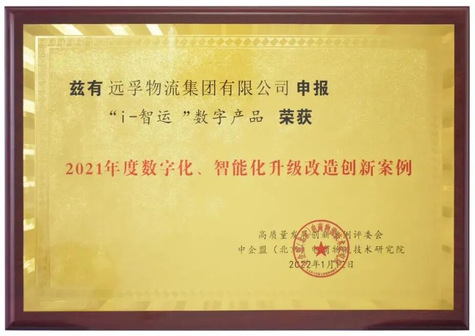 “i-智运”数字运力产品荣获“2021年度数字化、智能化升级改造创新案例”奖