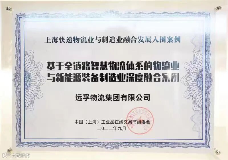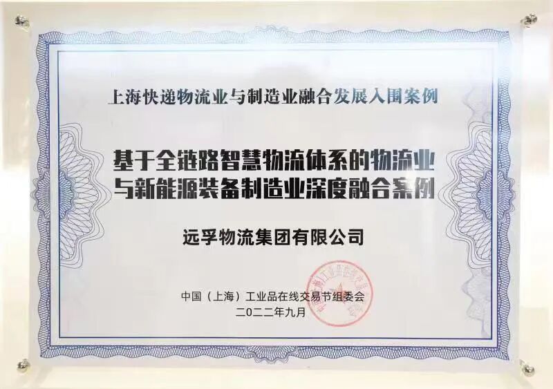 远孚集团荣获“上海快递物流业与制造业融合发展优秀案例”
