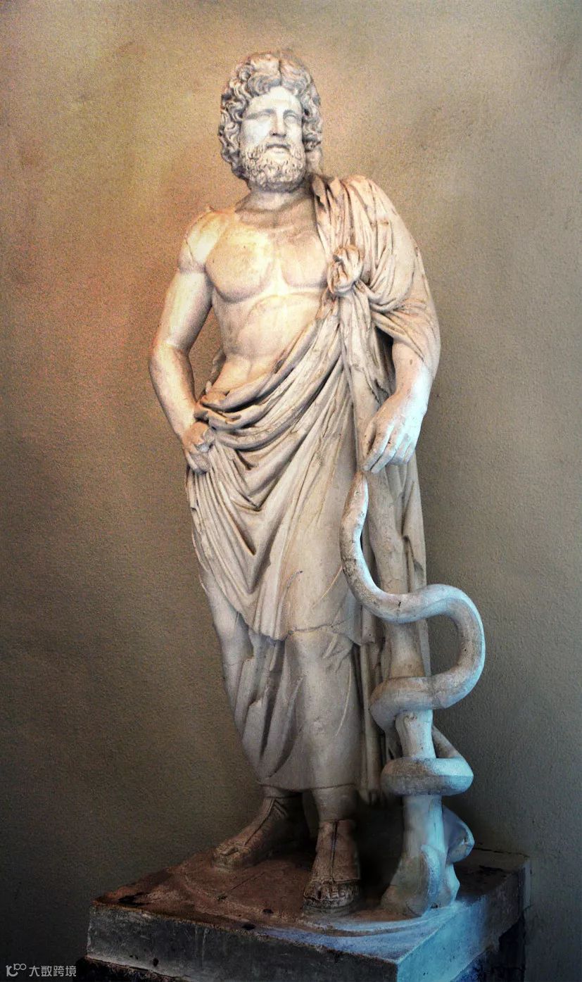 Asclepius(阿斯克勒庇俄斯)是希腊神话中的一位神灵,是太阳神Apollo的儿子,司管healing and medicine(痊愈和医药)。在古代,希腊半岛各地,都建有供奉Asclepius的庙宇神殿。