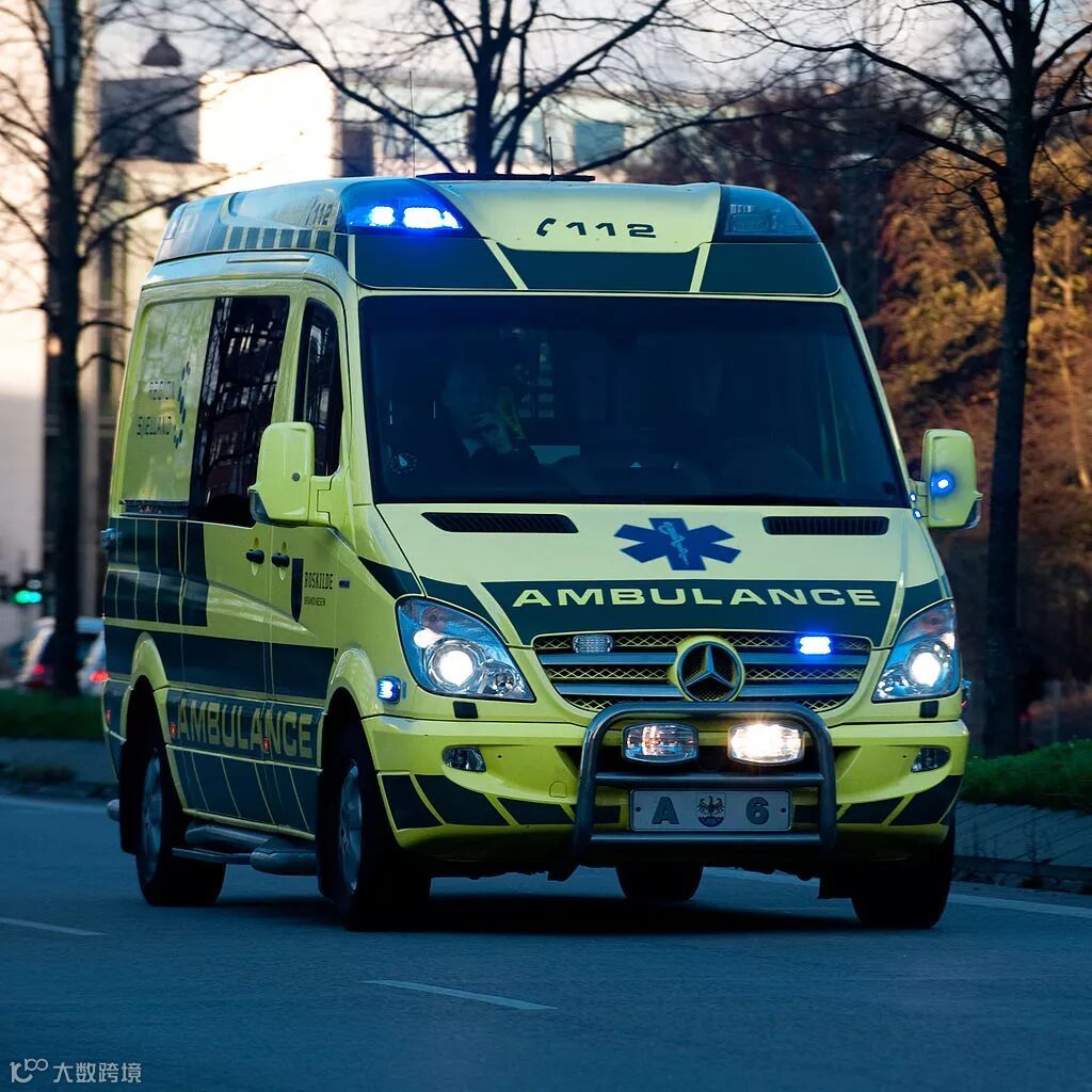 丹麦的救护车,车头前方就可以看到蛇杖标志。