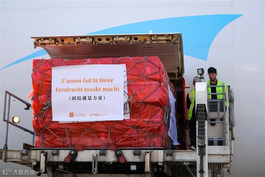 2020年3月16日,30万只中国捐赠的口罩抵达比利时列日机场 图源:新华社
