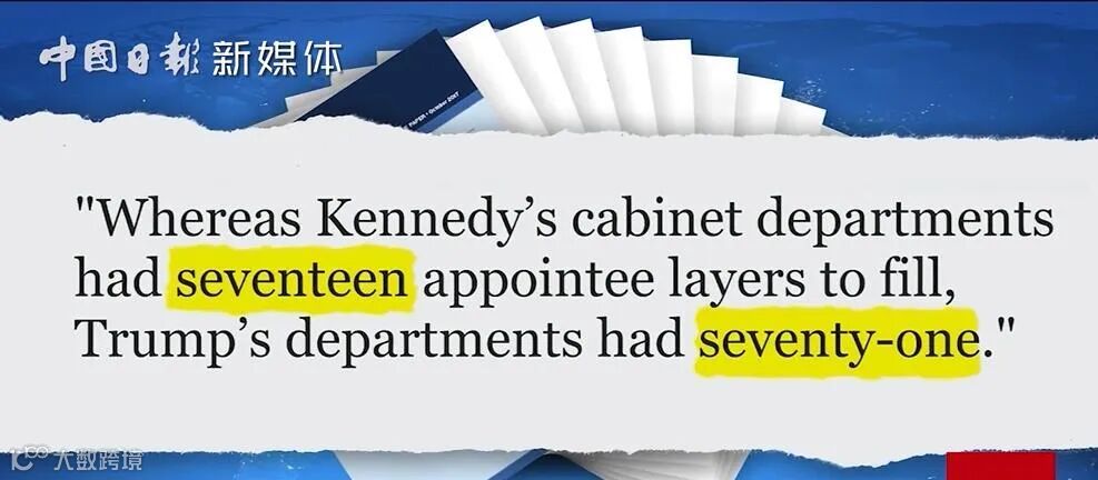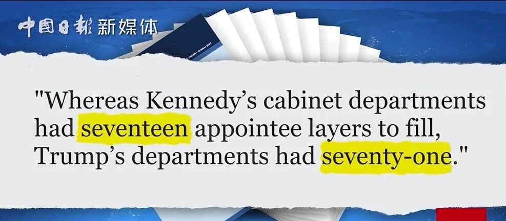 长期研究这一课题的学者保罗·莱特指出,约翰·肯尼迪总统内阁有17个层级;到特朗普上台时,已经达到惊人的71层。