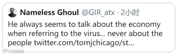他说到新冠病毒的时候,总是在讨论经济,从不说起人民。