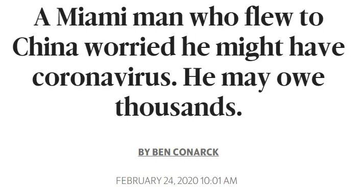 有相关新闻报道称,佛罗里达州迈阿密一名男子做了新冠肺炎检测后,收到了一张3000美元的收费单。