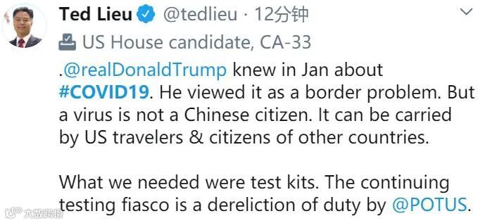 目前,美国政府应对疫情时的反应缓慢、检测不力已经遭到各方诟病。