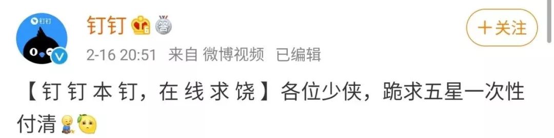 被疯狂打一星的钉钉终于看不下去了,16日在官微发布了一则“钉钉本钉,在线求饶”的视频,请求用户5分好评一次付清。