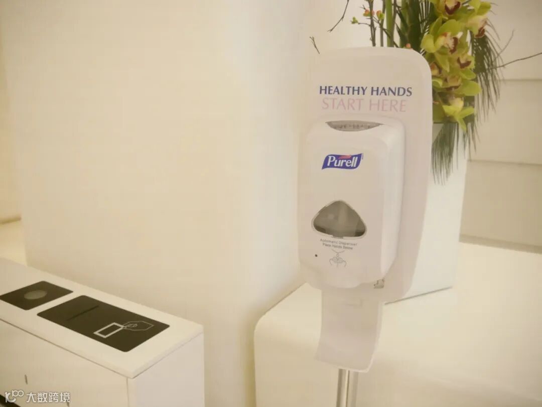 在很多公共场合,也放着大瓶的净手液。比如报社所在的那栋楼,门前一左一右两大立式净手液“护法”。