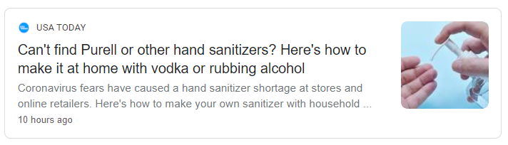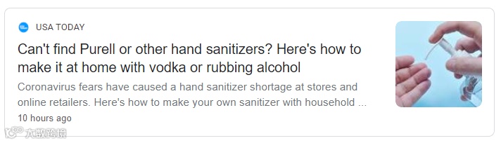 买不到不要紧,美国媒体还有教你用伏特加自制净手液的方法……这让我想到国内前段时间,酒精度90%以上的“生命之水”也成了紧俏货。