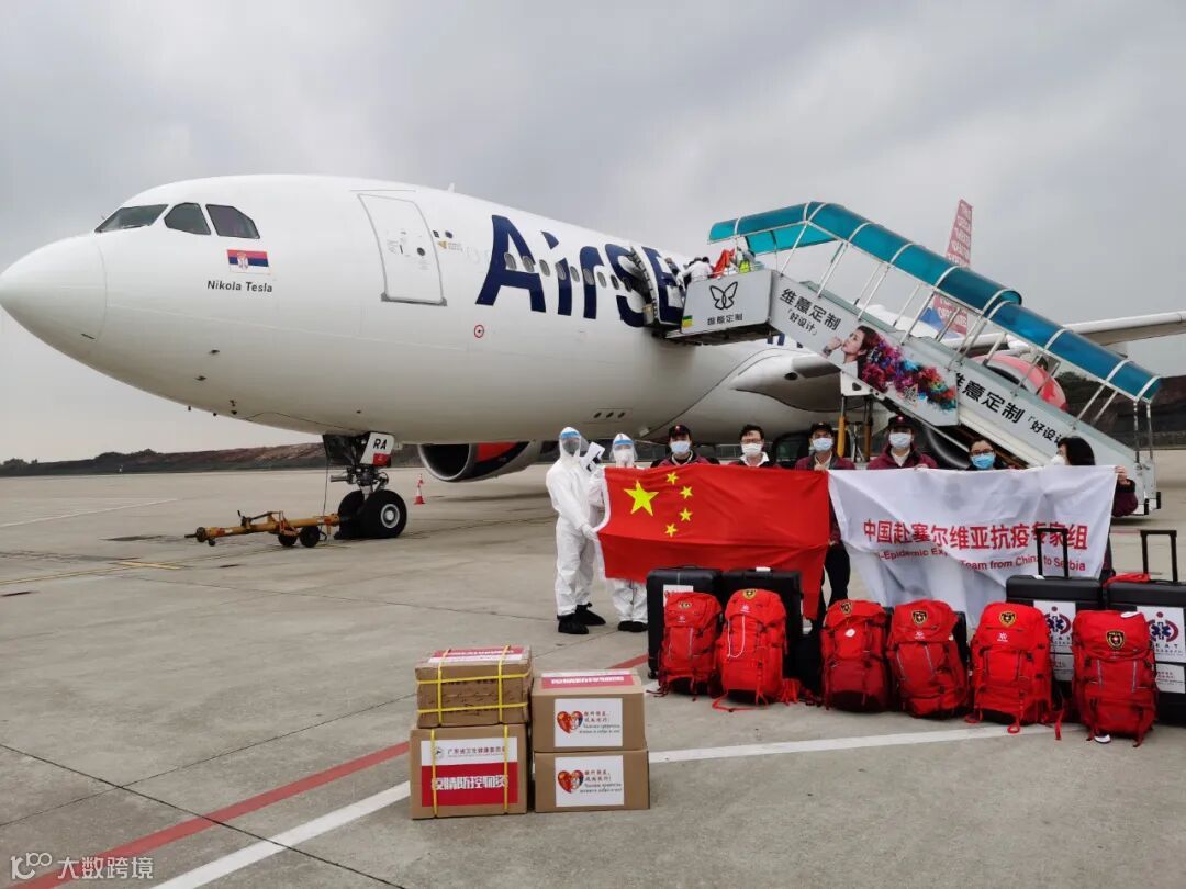 塞尔维亚时间3月21日19时30分(北京时间22日2时30分),中国政府派遣的由广东省卫健委组建的专家组一行6人,携带防护服、医疗器械等医疗物资抵达塞尔维亚首都贝尔格莱德。