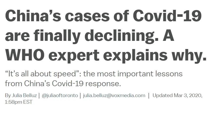 我没有看到任何操控数据的迹象,目前迅速升级的疫情已经稳定下来,并且疫情下降速度比预期要快。粗略地算,有成千上万中国人因这种积极的防疫措施而没有感染新冠肺炎。