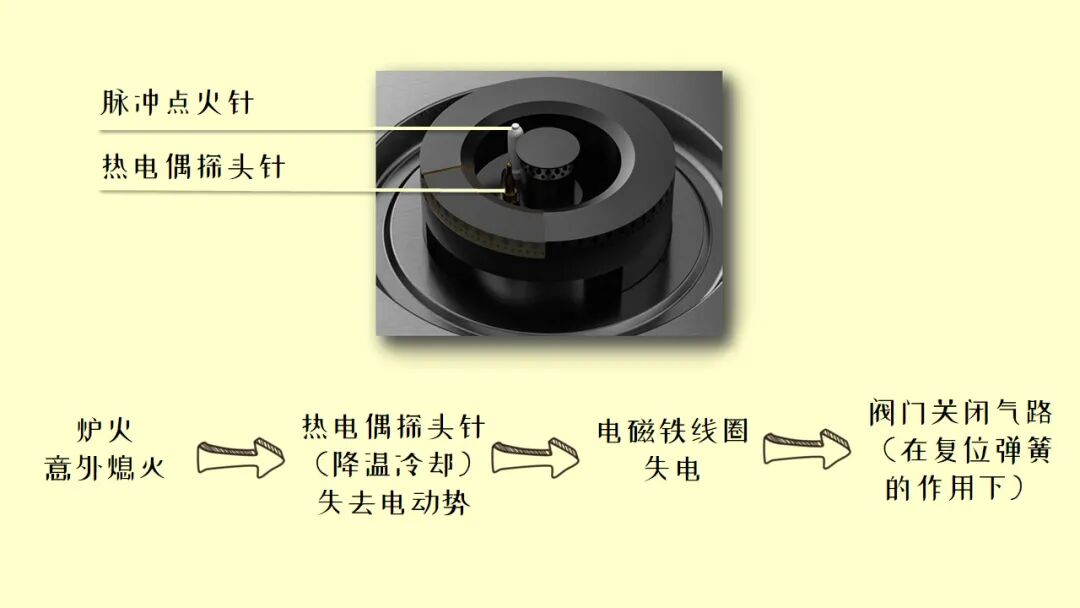 当炉火意外熄灭时,熄火保护装置能自动切断燃气,避免燃气泄漏。