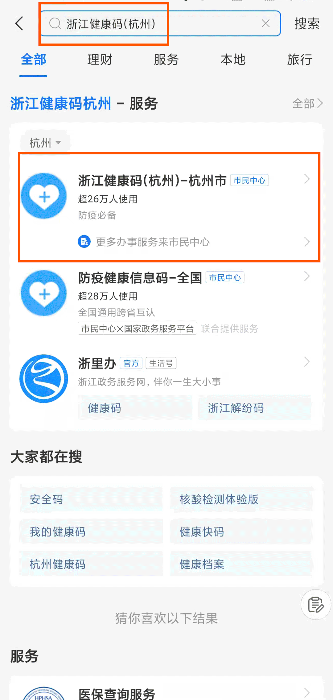 在支付宝搜索“浙江健康码(杭州市)”可获取杭州健康码,搜索“行程卡”可以进入行程卡界面。另外,在杭州健康码界面也可以直接点击”行程卡“进入行程卡界面。