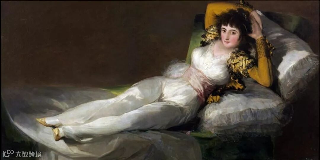 西班牙画家哥雅的作品Clothed Maja,是欧洲美术中为数不多的一幅穿着衣服的reclining figure画作。