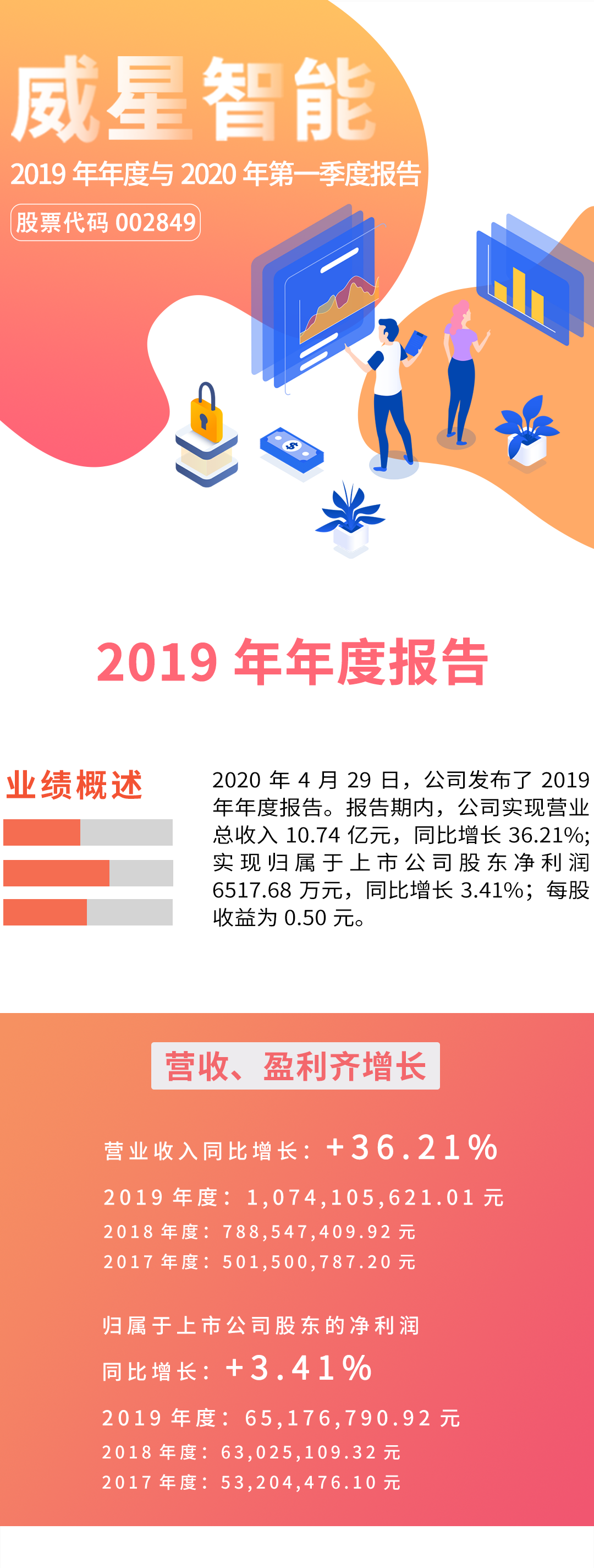 注:本文摘取了威星智能2019年年度报告与2020年一季度报告中的部分内容及指标,旨在方便投资者快速了解公司报告披露信息,如有误差,请以报告为准。