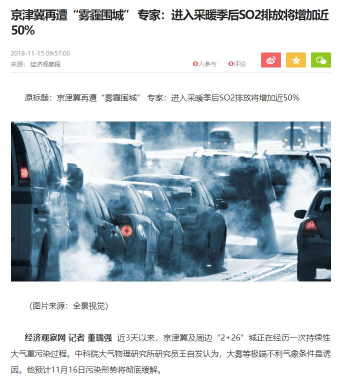 11月中旬以来天气转冷,昼夜温差变大,全国多地已进入采暖季,雾霾天也在全国各地悄然露头,蠢蠢欲动。