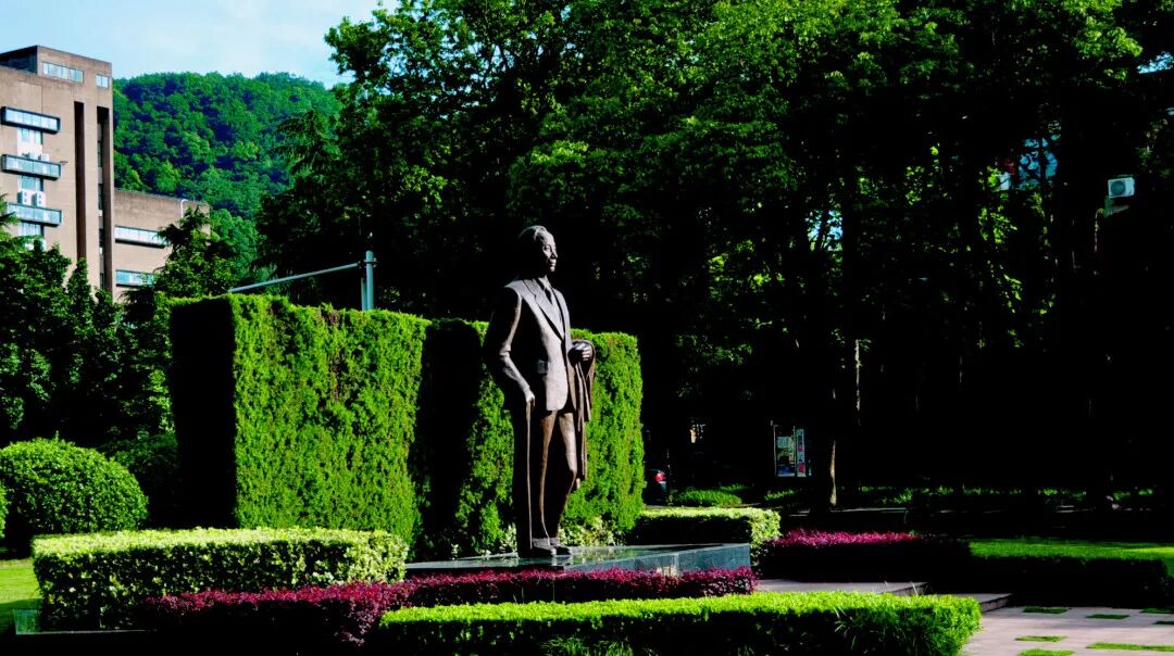 教室窗外,矗立着浙大玉泉校区内最大的雕像——毛主席雕像。风吹皱了伟人的大衣,坚定的右手指向远方。远处天台上,始终有来回踱步不时抬头背诵的浙大学子。眼前的画面,仿佛能带来无尽的精神力量和学习动力。