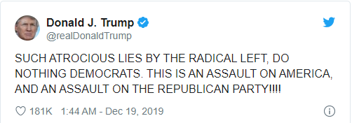 “This lawless, partisan impeachment is a political suicide march for the Democrat Party,” Trump said.