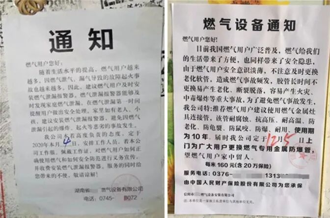 如果发现小区出现了“统一更换金属波纹管、统一安装天然气报警器”等通知,请不要想当然的认为这是燃气公司张贴的。因为张贴通知也是骗子的惯用伎俩:通过这种方式吸引更多人注意,同时降低大家的警惕性。