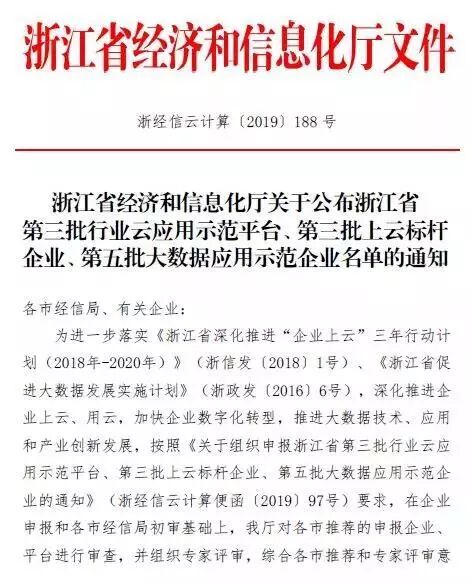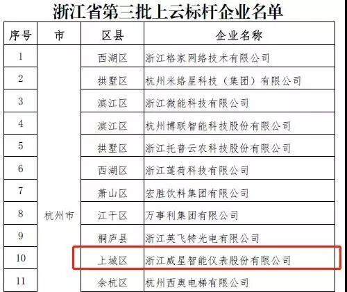 12月,威星智能以其先进的云产品和信息化智能制造技术,入选省级“上云标杆企业”。