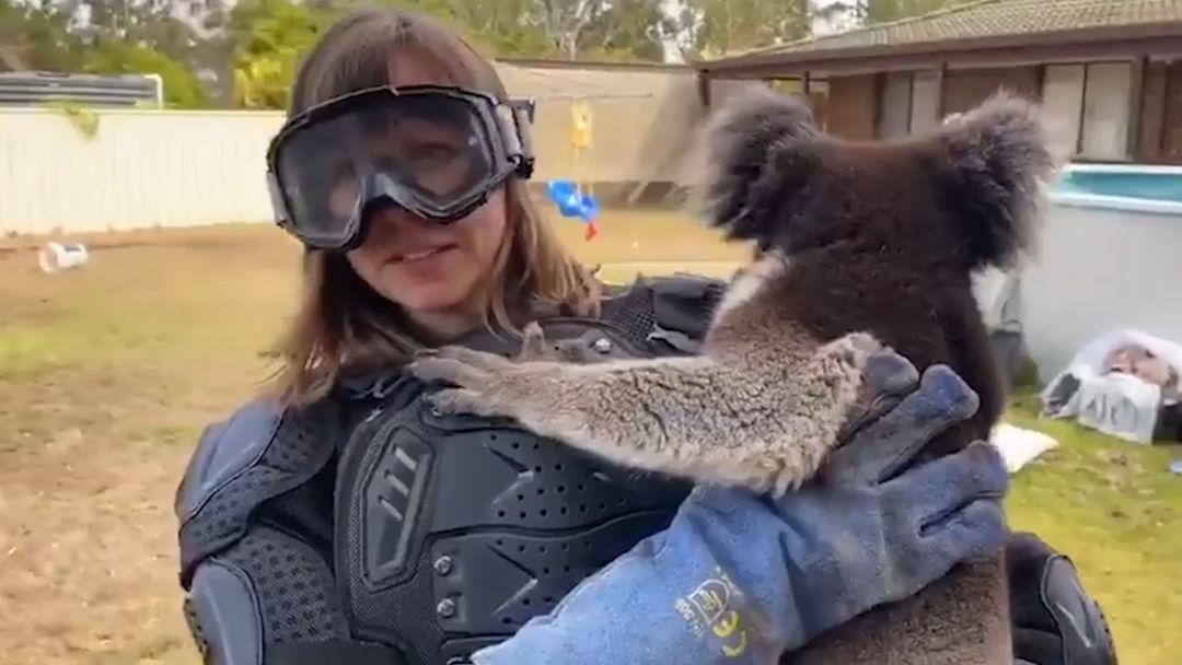 TV reporter wears full body armour to hold koala after being told it is 'vicious' animal with poisonous fangs