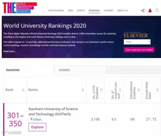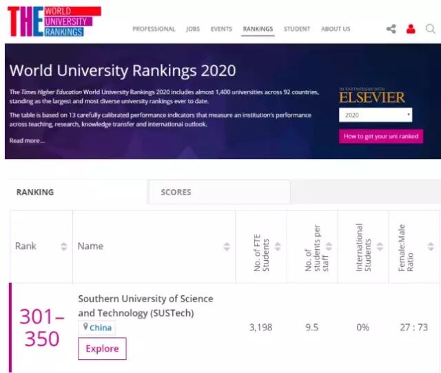 Times Higher Education (THE) ranked SUSTech No. 9 in Chinese mainland at THE World University Rankings 2020.