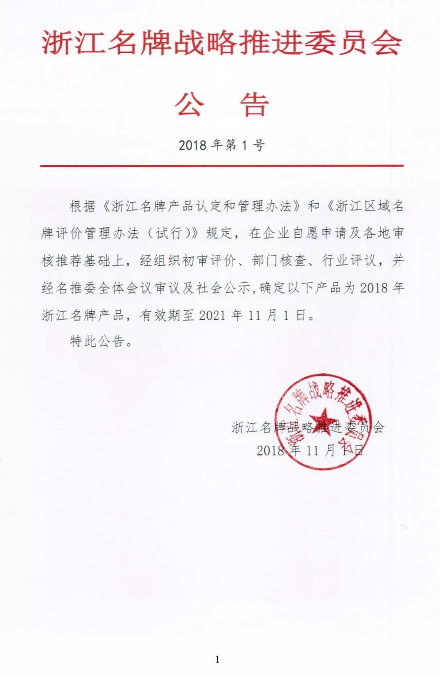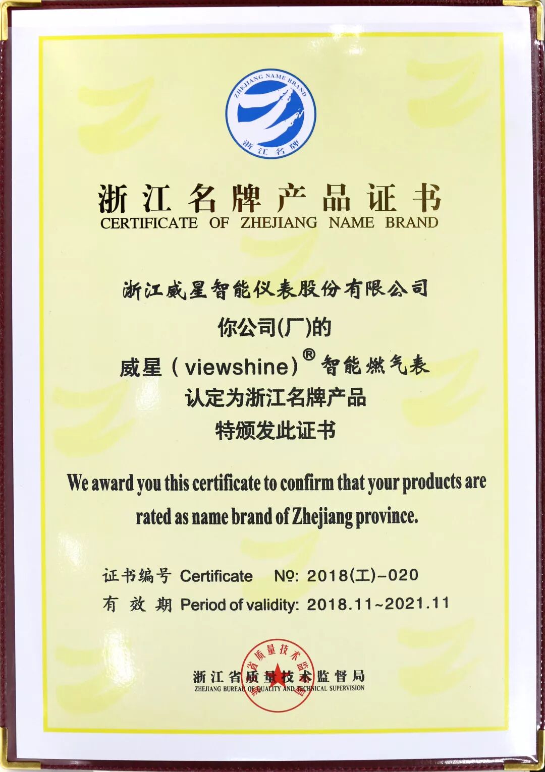 为贯彻落实《中共浙江省委浙江省人民政府关于开展质量提升行动的实施意见》(浙委发 [2018] 27号),持续深入打好“三强一制造”转型升级组合拳,推动品牌梯度培育体系建设,根据《浙江名牌产品认定和管理办法(试行)》、《浙江区域名牌评价管理方法(试行)》的要求,在企业自愿申请及各地审核推荐基础上,浙江省名牌战略推进委员会经初审评价、部门核查、行业评议、名推委全体会议审议及社会公示,将全省236个工业产品评为2018年浙江名牌产品,威星智能的智能燃气表成功入选。