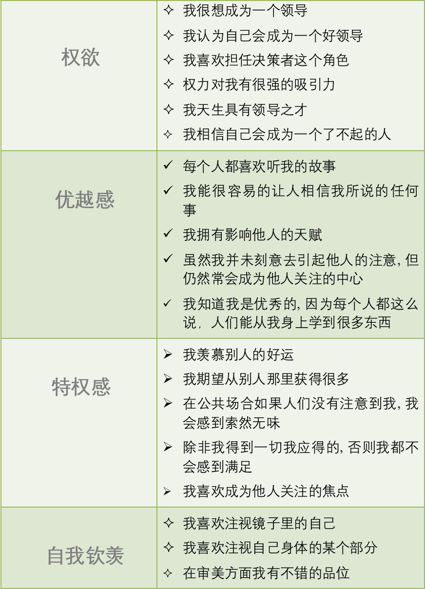 研究者们用来定义自恋的三个指标分别是: