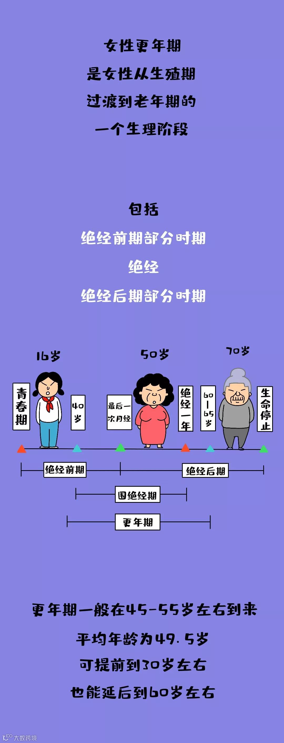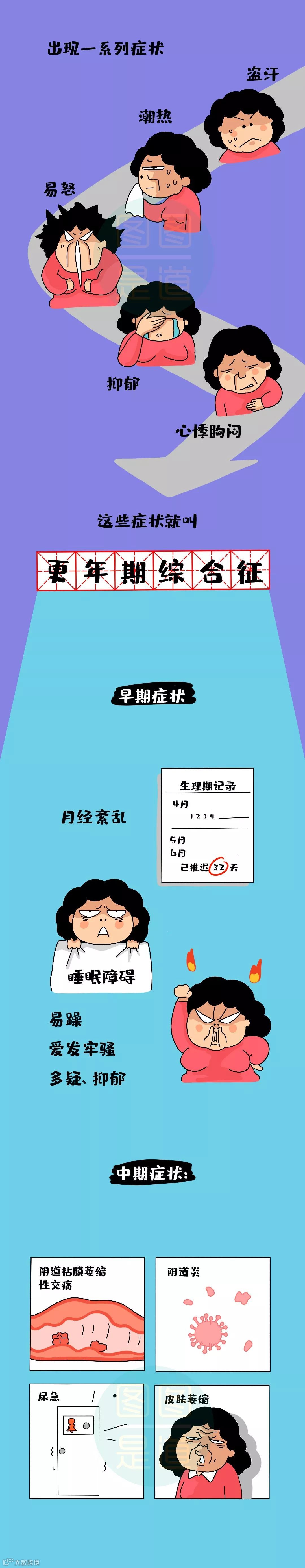 妈妈们在潜意识里都很抗拒更年期的到来她们害怕变老害怕不再美丽害怕被忽略害怕被打上“易燃易爆炸”的标签其实这些变化是所有女性都要经历的女性更年期又称围绝经期是女性从生殖期过渡到老年期的一个生理阶段包括绝经前、绝经、绝经后3个时期更年期一般在45-55岁左右平均年龄为49.5岁可提前到30岁左右也能延后到60岁左右女性进入更年期后卵巢功能逐渐衰竭分泌雌激素就会减少进一步引发全身多个器官和组织这些症状就叫“更年期综合征”早期症状: